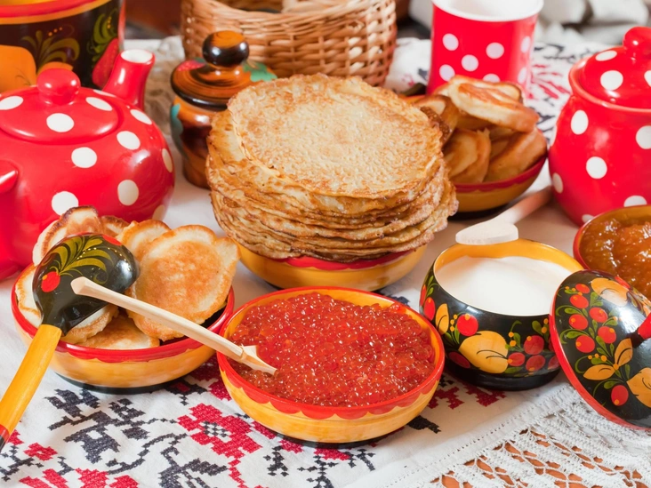 Главное блюдо Масленицы — блины, в меньшей степени — оладьи. Попробуйте приготовить традиционные русские блины дома. Не ограничивайте себя и попробуйте различные начинки, такие как варенье, мед, сметана или икра, чтобы в полной мере насладиться вкусным угощением (читайте также: «Самые вкусные начинки для блинов: 6 рецептов, которые покорят вашу семью»).