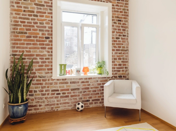 Вопреки стереотипам, первоклассный ремонт можно сделать и без использования дорогих материалов. Так, обои стоит взять простые однотонные или даже использовать на стенах обычную штукатурку (нанести ее неровными мазками, а потом покрыть краской), можно достичь необычного и красивого эффекта. Другая идея ─ не менять обои целиком, а обновить их за счет виниловых наклеек. Такое решение не только придаст интерьеру изюминку, но и поможет скрыть неровности стен (если, например, у вас не было возможности предварительно их выровнять), а также хорошо замаскирует различного рода дефекты.