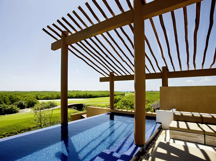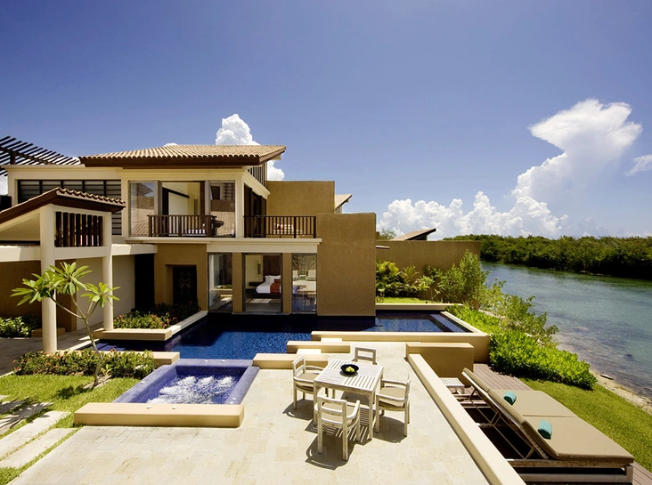 В Banyan Tree Mayakoba 118 вилл разных категорий, на территории каждой – бассейн в собственном тропическом саду, внутри – lux-аутентичность, запредельно высокие потолки, кровать в стиле майя, лампы и глиняные раковины талавера. Удивительная гармония природы и роскоши. В ваших владениях – полная приватность, если не считать экзотических птиц в мангровых зарослях и совершенно безобидных глазастых игуан. Связь с цивилизацией в любое время суток возможна через батлера.