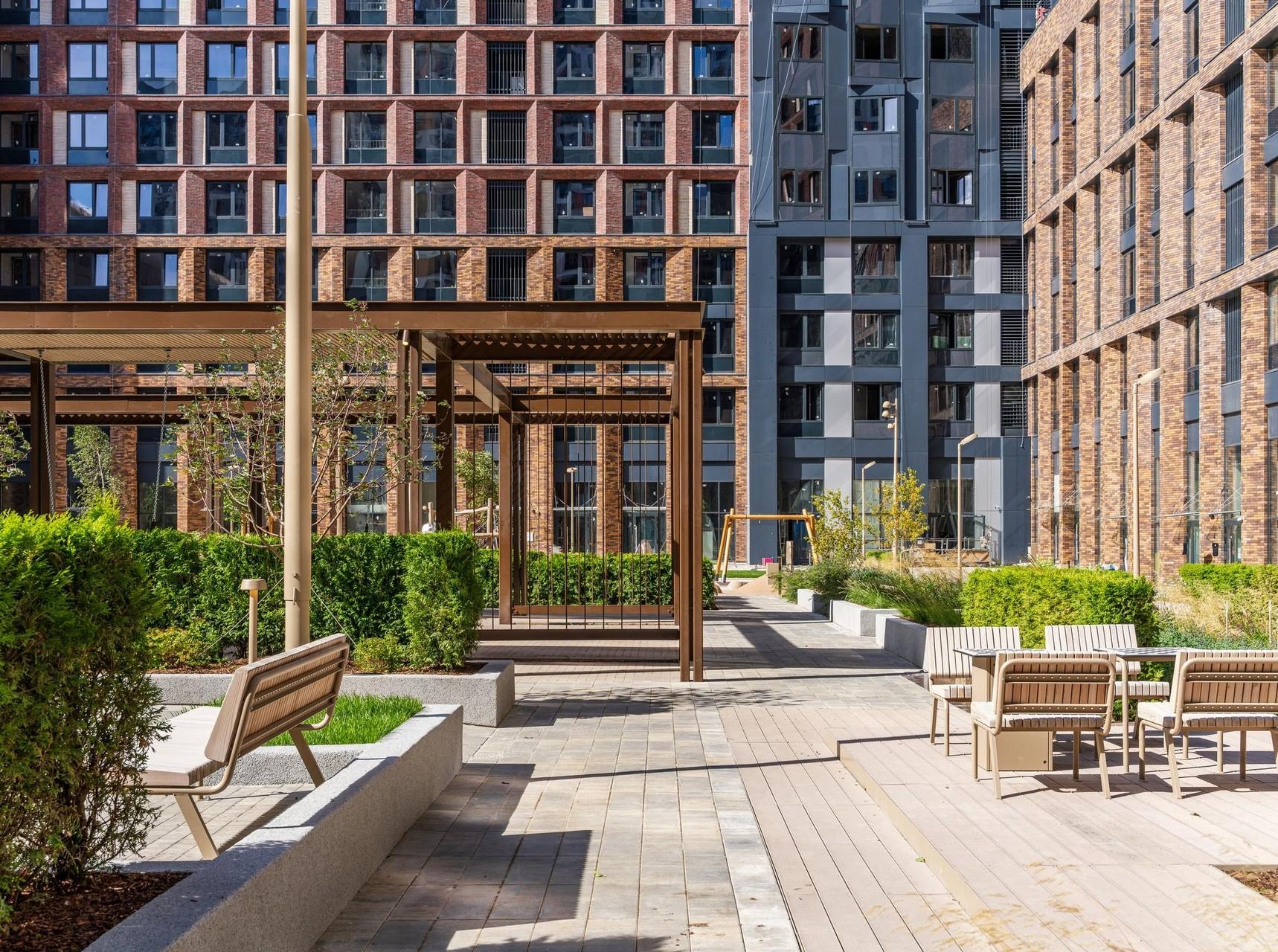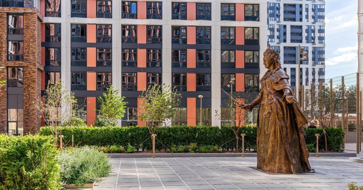 А можно даже никуда не выходить с придомовой территории. Помня о том, что в XIX веке здесь располагался пейзажный парк, который спроектировал автор резиденции Николая I в Петергофе Адам Менелас, ландшафтные дизайнеры спроектировали придомовую территорию по модели петровских и екатерининских садов. Здесь и характерная главная ось с рядом открытых и закрытых второстепенных пространств, создающих многообразие впечатлений внутри двора. И даже прямой оммаж Екатерининским временам — скульптурный портрет Екатерины II авторства Зураба Церетели. Скульптурная композиция, украшающая центр внутреннего двора, символизирует неразрывную связь истории района старой Москвы с историей страны.