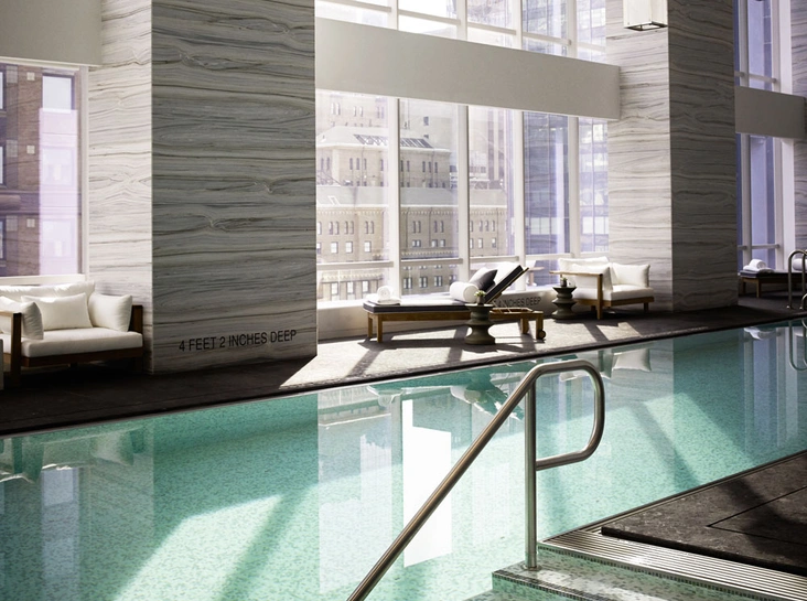 Еще одна «изюминка» отеля – спа-центр Nalai, что в переводе с языка коренного индейского племени Манхэттена означает «душевное равновесие». Плавая в бассейне, здесь можно слушать классическую музыку из саундтрека, специально составленного Carnegie Hall для гостей отеля. В числе новых уникальных спа-услуг – Bath Butler Service: ванны с мощным детокс-эффектом от компании GOOP, которую более 10 лет назад основала актриса Гвинет Пэлтроу. Сборы (эфирные масла, минеральные соли и органические лечебные травы), которые используются в этих спа-процедурах, составил личный фито- и иглотерапевт и травник актрисы.