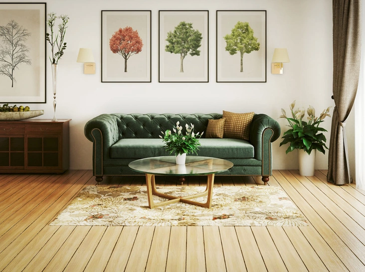 Еще один трендовый акцентный оттенок, который будет очень актуален в этом году, — террариумный мох. Это сложный природный зеленый, близкий к оливковому и хаки. В интерьере он создает умиротворяющую атмосферу гармонии с природой. Этот теплый зеленый оттенок придется по вкусу поклонникам эко-стиля и прекрасно впишется в помещения, где присутствует много белого и есть элементы из натурального дерева. В качестве компаньона к террариумному мху можно добавить акцентный синий. Связующим цветом может стать светлый бежевый, он подойдет для легких воздушных интерьеров. Для более драматичного эффекта используйте в качестве фона темный венге или глубокий черный. Так вы поможете взгляду нейтрализовать яркий переход от одного цвета к другому и отлично выделите оба активных оттенка. Любое из этих сочетаний идеально подойдет как для современной классики, так и для смелого стиля фьюжн.