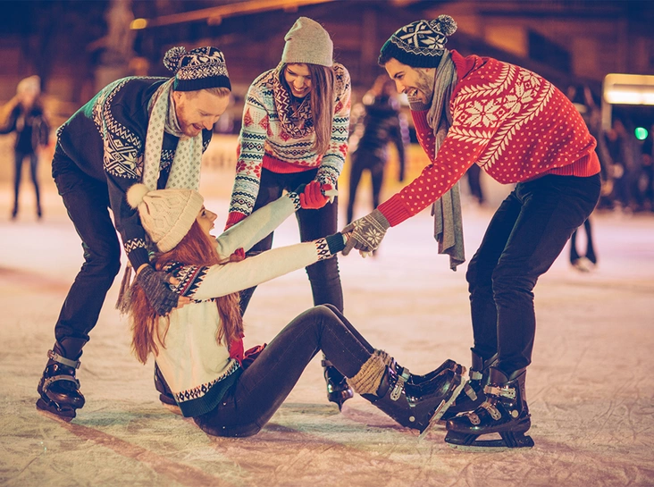 Специально для маленьких гостей на катке есть помощники-тренажеры, которые научат детей держать равновесие и балансировать. В этом году это северные мишки, морские котики и пингвины. А вот морские котики не только выполняют обучающую функцию – на них еще можно проехаться по льду с ветерком как на санках.