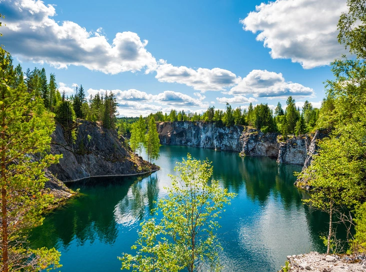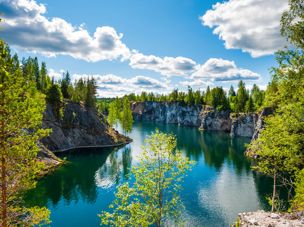 Горный парк «Рускеала» в Карелии заслуживает внимания хотя бы потому, что является единственным в своем роде природным объектом, красоте которого вмешательство человека не только не навредило, но и пошло на пользу. После того, как обнаруженные в конце XVIII века залежи мрамора перестали вырабатывать, карьер решено было затопить. В результате на месте крупнейшего месторождения ценной породы, которая использована в отделке Исаакиевского собора и центральных станций Московского метрополитена, образовалось озеро. Чистая прозрачная вода, в которой отражаются мраморные склоны и хвойные леса, вызывают чувство полного спокойствия и необыкновенной гармонии. В Рускеалу стоит приехать, чтобы погрузиться в удивительно сказочную атмосферу и на время забыть о суете большого города.