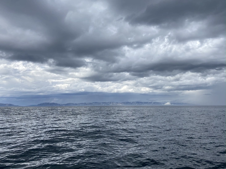 Конечно, многие могут возразить, что ловить рыбу в таких условиях — не самое честное занятие, вот только рыбалка в открытом море глубоководная, и наживку приходится опускать на глубину около 50 метров. Удача повернулась к нам лицом, и вскоре мы отправились в глэмпинг с уловом — три трески, которые шеф преобразил в свежее морское блюдо. На пути встретились Айновские острова с выброшенным на берег кораблем, бухта, которая показалась уж больно спокойной по сравнению с открытым морем и очертания Норвегии. С погодой в тот день тоже повезло: утром солнце, перистые и кучевые облака, блики на морской глади, позже тучи начали сгущаться, но от этого величие морского пейзажа стало еще более явным, спорить с грозой — слишком рискованно.