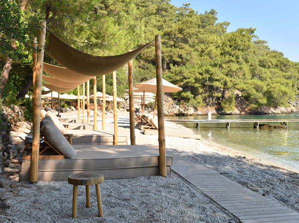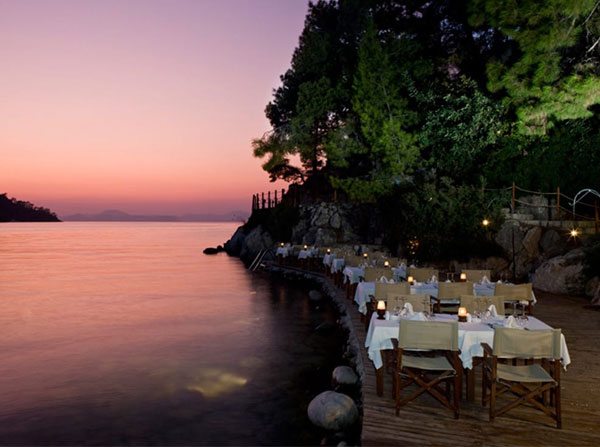 Отель со всей современной инфраструктурой располагается в частной бухте залива Калемия, в окружении сосновых лесов с приятным хвойным ароматом. А номера напоминают домики, расположенные на склоне холма с видом на бирюзовое море. Поэтому те, кто мечтал полностью слиться с нетронутой природой во время отпуска, точно оценят уникальный ландшафт и возможность каждый день гулять по живописным окрестностям.