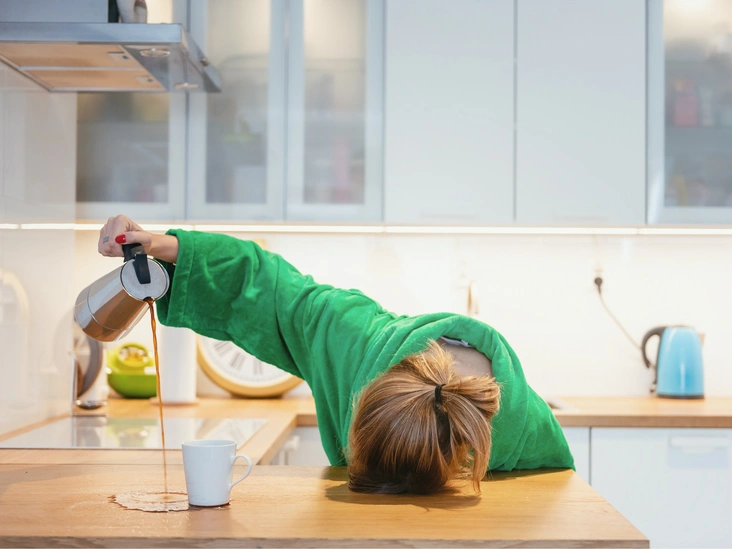 Вы только проснулись, а уже устали. Со временем при частом и стабильном кофепитии организм становится устойчивым к воздействию кофеина, что заставляет увеличивать дозировку. Если не привыкли пить обычную воду в течение дня, то это только усугубит общую картину. Таким образом, организм можно довести до обезвоживания, а бесконечные кофе-паузы только усилят негативный эффект. Задумайтесь — стекловидное тело глаза на 90% состоит из воды. Неконтролируемая одержимость кофе — одна из причин ухудшения зрения. Помимо этого в сухом остатке (в прямом и переносном смысле) получаете усталость и плохое качество сна. 2-3 чашки кофе в день не навредят, однако большее их количество, отсутствие воды и сбалансированного питания способно нанести вред здоровью.