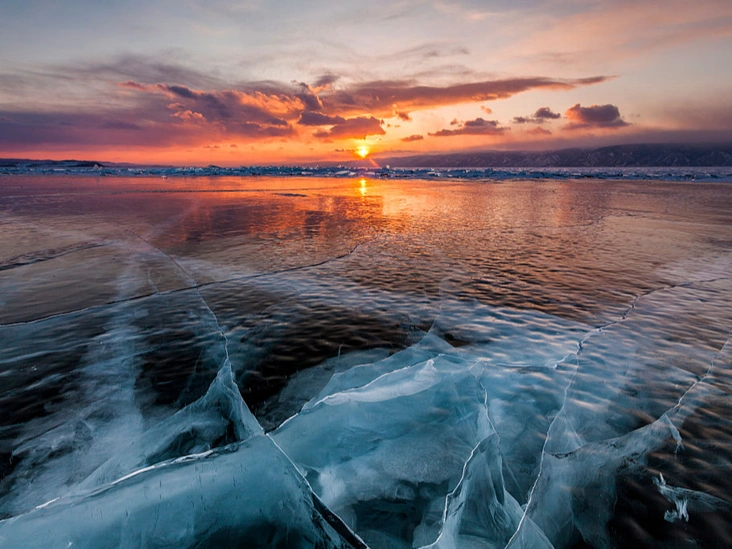 Зима на Байкале холодная — средняя температура держится на уровне −20 °C — но при этом безумно красивая. Помните эти инстаграмные (запрещенная в России экстремистская организация) картинки с замерзшей водой удивительного голубого цвета? Вы сможете сделать такие же! А еще поискать разный по структуре лед — забереги, шах, осенец, колобовник. В некоторых местах он настолько прозрачен, что можно даже разглядеть дно. И обязательно покатайтесь на коньках — поверхность озера очень ровная, а на берегу работают прокатные пункты.