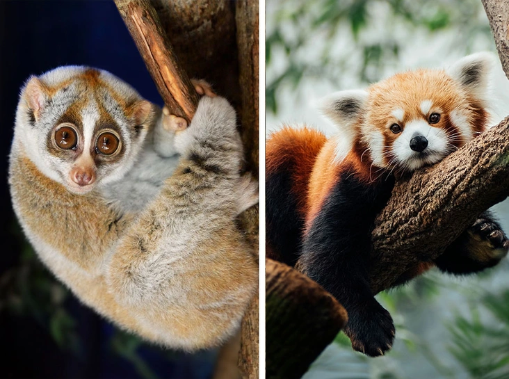 Этот зверек, обитающий в Юго-Восточной Азии, отличается красно-коричневым окрасом, аккуратной мордочкой и огромными трогательными глазами. Он ведет ночной образ жизни, практически никогда не спускаясь на землю. После захода солнца медленный лори отправляется на поиски еды, при этом двигается от плавно и осторожно, стараясь не издавать лишних звуков. Да, он выглядит, как плюшевая игрушка, которая не может причинить никому вреда. Но это не так. На самом деле, если медленный лори почувствует угрозу поблизости, то из желез на его теле начнет выделяться секрет, который при смешивании со слюной превращается в опасный яд. Так что если вы увидите, как этот зверек вылизывает свою шерсть, не вздумайте к нему прикасаться.