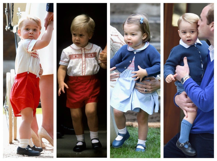 В 2014 году принц Джордж носил короткий комбинезон в мелкую бело-красную полоску. В нем малыш был запечатлен в Канберре, когда на нем был ярко-алый кардиган на пуговицах, и во время благотворительного матча по поло — с белым поло с короткими рукавами. Пять лет спустя принц Луи пришел на цветочную ярмарку в Челси в том же комбинезоне (и тех же сандалиях).