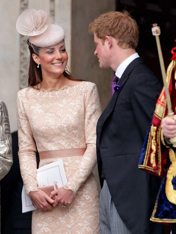 На благодарственной службе по случаю Бриллиантового юбилея Елизаветы II в 2012 году в лондонском соборе Святого Павла Кейт и Гарри казались особенно веселыми. Похоже, герцогиня захихикала после того, как к ней наклонился принц и произнес какую-то шутку.