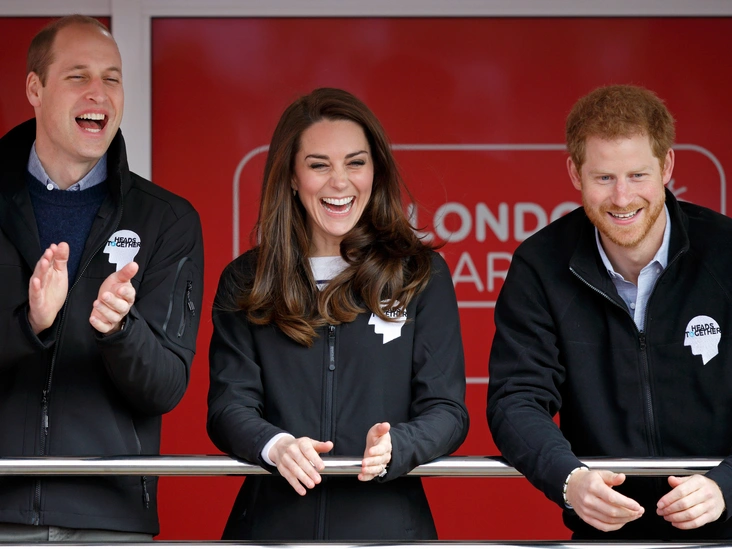 Гарри и Кембриджские обожали посещать спортивные мероприятия вместе. На этом снимке они изображены подбадривающими участников лондонского марафона Virgin Money 2017 года на его старте. Кампания Heads Together, поднимающая вопросы психического здоровья, патронами которой они выступают, была партнером марафона.