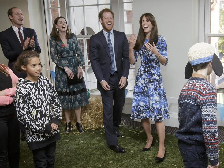 Уильям, Гарри и Кэтрин были в истерике от смеха, когда навещали сотрудников и подопечных благотворительных организаций и Aardman Animations в Лондоне в ходе мероприятия благотворительного форума BAFTA в 2015 году. Титулованные особы играли с детьми в бросание сапога — игру, известную под названием welly wanging.