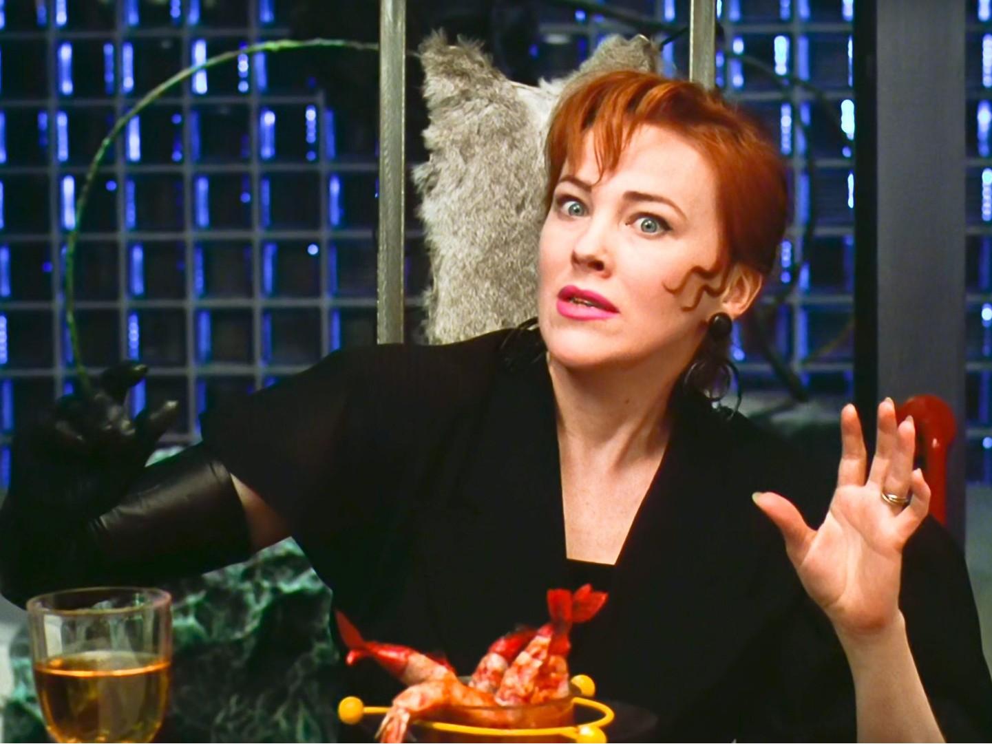 О’Хара снялась в нескольких фильмах Тима Бертона, первым из которых стала эта сверхъестественная комедия о нахальном призраке, который помогает умершей паре отпугнуть новых обитателей их прежнего дома. Она удачно использует свой притворный аристократический акцент в роли Дилии Дитц, высокомерной скульпторши и матери семейства, переехавшего в старый дом. Кэтрин также повторила свою роль в сиквеле 2024 года, «Битлджус, Битлджус».