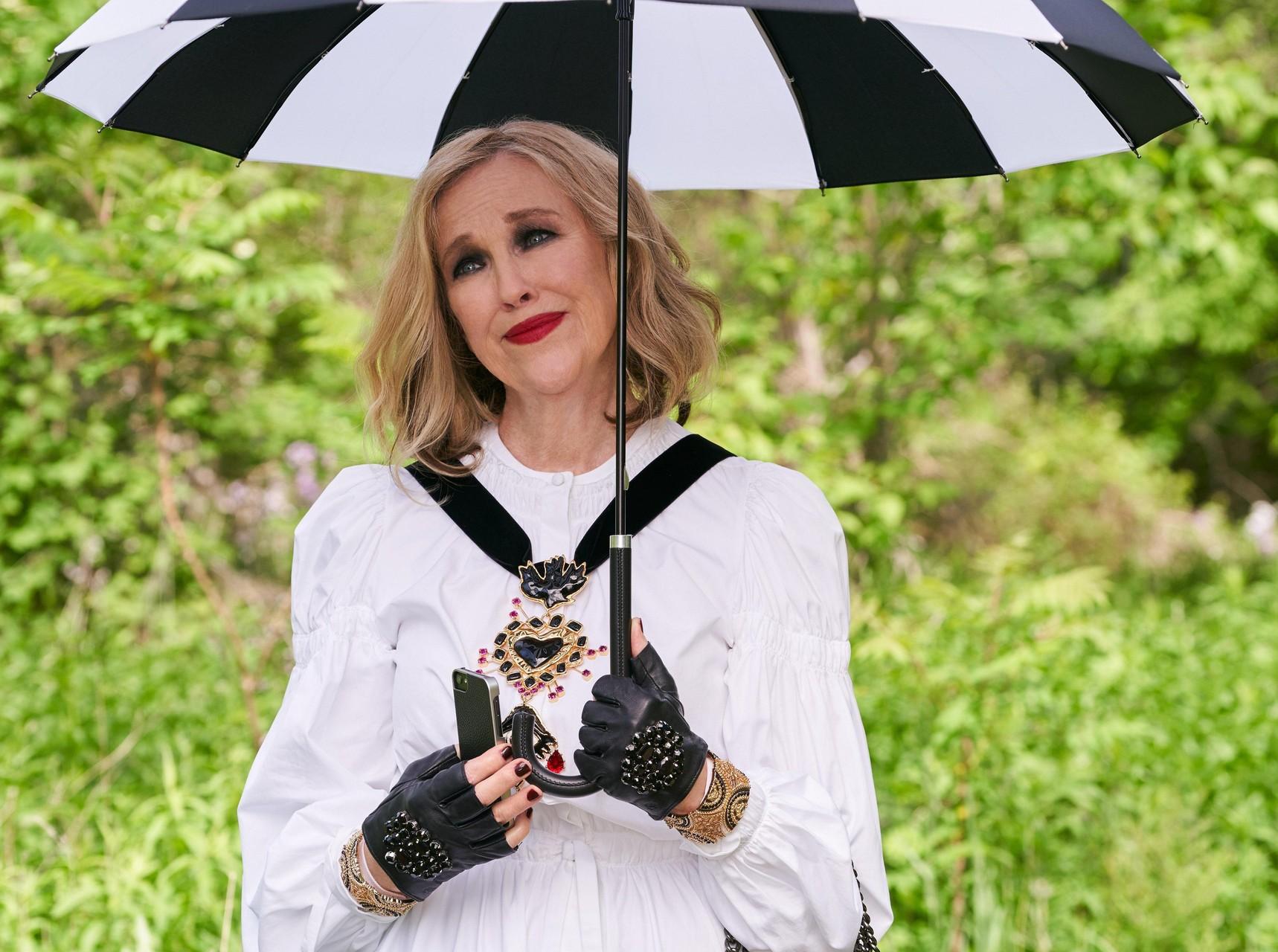 Одна из последних работ Кэтрин. Она сыграла Пэтти Ли, эксцентричную руководительницу киностудии, в комедийном сериале Сета Рогена для Apple TV. В этой роли Кэтрин сменила свои обычно уложенные светлые волосы на густую шевелюру, а также стала самым любимым персонажем для многих фанатов сериала.