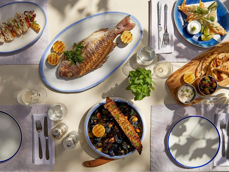 На курорте более 40 ресторанов и баров, помимо разнообразной греческой палитры, здесь есть рестораны с самыми популярными кухнями мира: Испании, Италии, Японии, Индии и даже Перу. Детские меню в ресторанах разработала знаменитая Аннабель Кармель — британский эксперт по здоровому детскому питанию и кавалер ордена Британской империи. А еще во всех меню есть вегетарианские, веганские, безлактозные и безглютеновые опции.