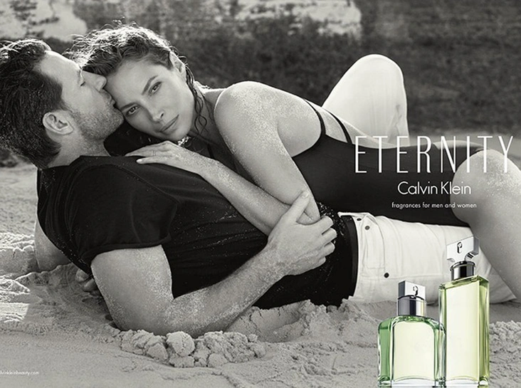 Американский бренд Calvin Klein эпоху 90-х любит особо, регулярно приглашая к сотрудничеству культовых персон ушедшего десятилетия. Так, в 2014 году героиней кампейна обновленного аромата Eternity, отпраздновавшего 25-летие, стала легендарная модель Кристи Тарлингтон: именно она эксклюзивно представляла парфюм с 1989 года. Ее партнером по съемкам стал супруг Эд Бернс — с ним известная модель состоит в браке с 2003 года.
