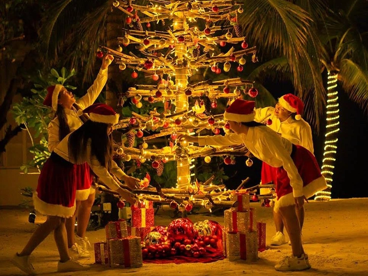 Курорт на острове в форме полумесяца предлагает встретить праздники в формате настоящего гастрономического тура. Гости смогут перемещаться между ресторанами, пробуя кухни разных стран: тайские блюда в подвесном Kaashi, японские деликатесы в Hashi, индийские специи в песчаном Riha и ужины с редкими винтажами.
