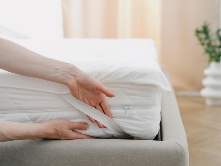Использовать протектор на кровати необходимо, чтобы защитить ее от любой жидкости, пятен и следов пота. Учтите, что несмотря на то, что наматрасники могут помочь продлить срок службы матраса, они не защищают кровать от пылевых клещей и других аллергенов. Это значит, что чрезвычайно важно чистить матрас каждые шесть месяцев, беря смену основных сезонов за важное напоминание (вы также можете установить соответствующие уведомления на телефон).