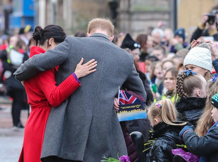 Порой Гарри действует вопреки порывам супруги и стремится защитить ее в своих объятиях. «Меган склонна к использованию сигналов доверия в отношениях, и она отвечает взаимностью мягким объятием, ее рука на его спине выглядит квазиматеринским жестом. Тут сразу несколько посылов: Гарри стремится быть защитником, Меган же старается показать, что она в порядке и в то же время поддержать мужа», – поясняет специалист (читайте также: «Как менялся язык тела Меган на протяжении первого года в королевской семье»).