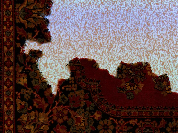 Коллектив медиа-художников, создающих свои произведения с элементами цифрового искусства, а также объединяющих в своей практике работу с визуальными и акустическими элементами. Крупноформатная работа «Парестезия» объединения INTERLNKD представляет собой советский шерстяной ковер, на котором угадывается контур России, знакомый всем нам с раннего возраста по картам и учебникам. Картографическое очертание заполняется визуальным белым шумом, характерным для изображения на телевизионном экране, когда возникают помехи в трансляции.