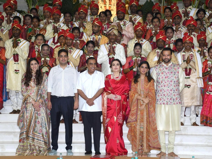 2 июля пара устроила так называемую «массовую свадьбу» в городе Палгхар для более чем 50 малообеспеченных индийских пар. От богатой семьи Амбани менее привилегированные жители Индии получили золотые украшения и продукты на целый год. Несколько дней спустя в Мумбаи под чутким руководством Мукеша Амбани, отца жениха, была проведена церемония Сангит, которая традиционно включает в себя множество праздничных танцев и песен (читайте также: «Первый танец: какие песни выбирали для свадьбы королевские пары»). На ней гости смогли вживую насладиться выступлением Джастина Бибера.