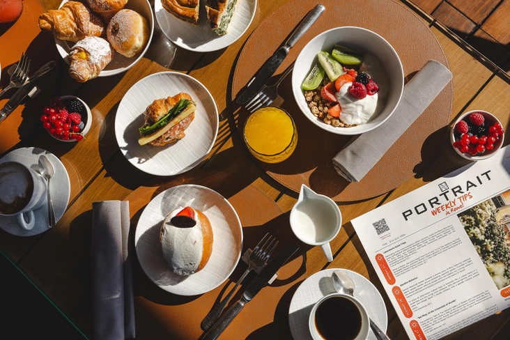 Отдельно стоит сказать про сервис. Каждый гость в отеле особенный, поэтому как только вы заселяетесь в отель, вам приставляют персонального консьерж-менеджера, который может организовать все: от персонального шопинга, специальных скидок в бутике Salvatore Ferragamo и экскурсий по малоизвестным достопримечательностям Рима до массажа в номере и подбора подушки. Не зря в 2025 году отель Portrait Roma получил ключ Michelin.