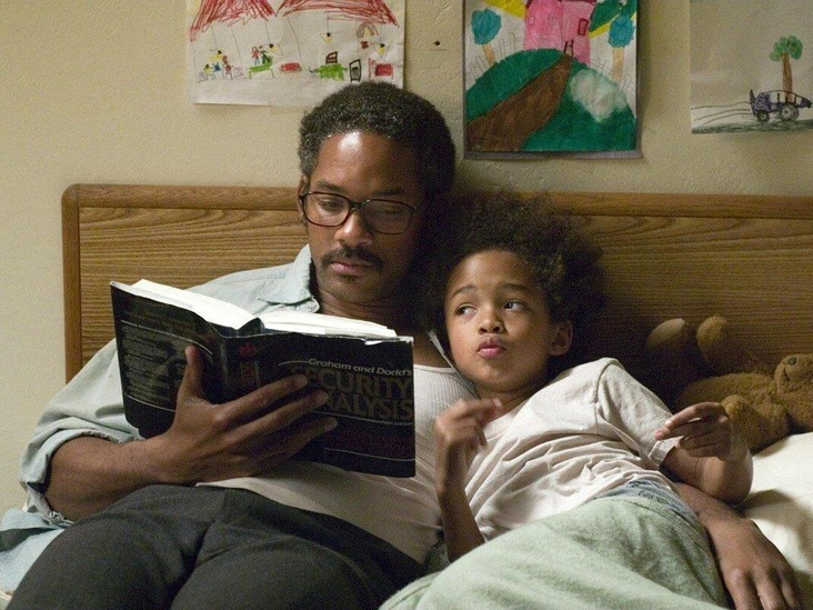 Отец-одиночка Крис погряз в долгах. После тяжелого расставания и неудач со стартапом Гарднер остается на улице с ребенком, ночуя в туалете метро, а если повезет — в приюте методистской церкви. Неоплаченные кредиты и штрафы копятся, и денег нет даже на то, чтобы прокормить маленького сына. Понимая, что так продолжаться больше не может, однажды мужчина решает кардинально изменить жизнь семьи, согласившись на стажировку в маклерской фирме. Однако есть одно «но» — первой зарплаты можно ждать только через полгода, и то при условии, что он станет лучшим из 20-ти таких же оппонентов. Герой делает все возможное для Кристофера-младшего и находит в себе силы закончить программу. Конечно, фильм радует хэппи-эндом: персонаж Уилла Смита достигает высот и вдохновляет идти к цели несмотря на невзгоды (читайте также: Расизм и сомнительные шутки: 10 громких скандалов в истории «Оскара»).