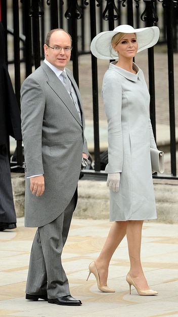 Представители монакского королевского дома были одной из самых стильных пар церемонии. Альбер II предпочел традиционному черному пыльно-серый фрак, а его супруга Шарлен надела изящное платье-пальто светло-голубого оттенка с телесными лодочками и элегантной шляпкой в тон наряду. Образ завершали тонкие белые перчатки, которые пришлись как нельзя кстати (читайте также: Развод или временные трудности: что происходит с браком княгини Шарлен и князя Альбера II).