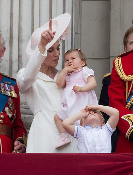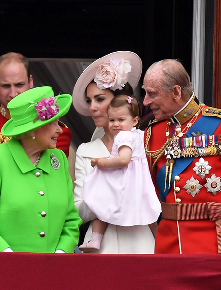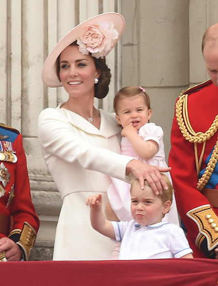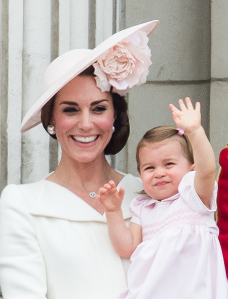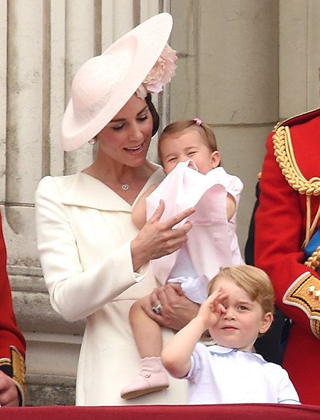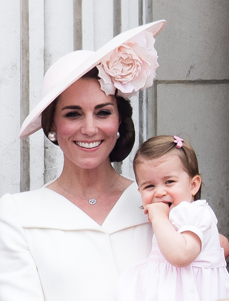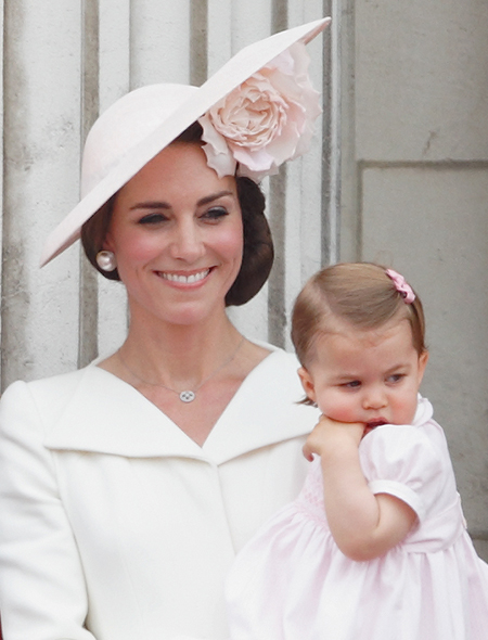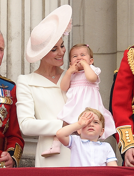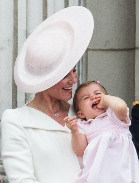 Первое официальное появление принцессы Шарлотты, отметившей год, состоялось во время ежегодного мероприятия Trooping The Colour, которым традиционно отмечается день рождения Елизаветы II (да, празднуют его не в апреле, как можно было бы подумать, а в середине июня). Тогда, правда, главным героем стал старший брат Джордж, который норовил вывалиться с балкона. Принцесса Шарлотта тем временем сидела на руках мамы и непринужденно грызла свои пальцы, вызвав после шквал умиления в социальных сетях.