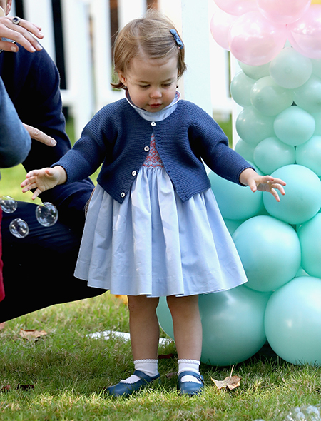 За все время канадского тура у маленькой Шарлотты и ее старшего брата Джорджа было только одно официальное мероприятие, на котором они были почетными гостями: детский праздник у Дома Правительства, на который были приглашены семьи военнослужащих, несущих вахту за пределами страны. Тут-то Шарлотта показала себя во всей красе. Принцесса, как оказалось, уже неплохо ходит самостоятельно, очень увлекается воздушными шариками и мыльными пузырями, которым была посвящена ее первая «публичная» речь. Наблюдая за тем, как лопаются пузыри, Шарлотта сказала: «Pop-pop!» (эквивалент нашего «хлоп-хлоп», только более простой для речи полуторагодовалого малыша).
