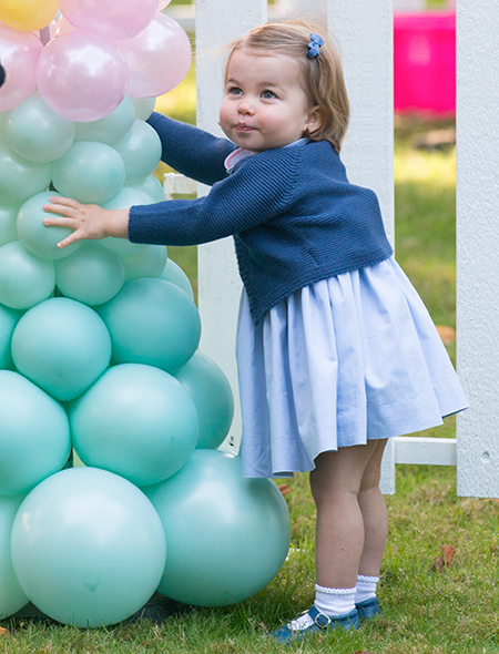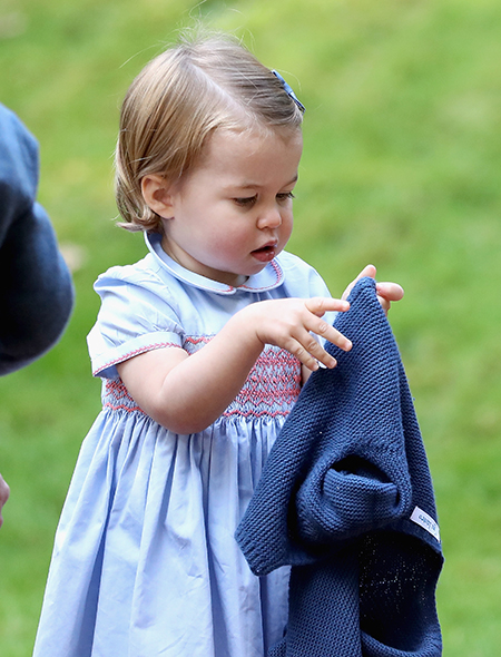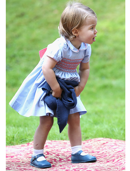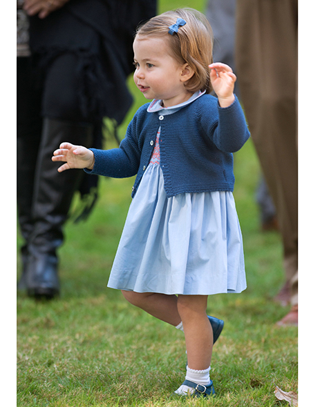 На празднике Шарлотта снова была одета в платье с цветочным принтом, очень похожем на все ее предыдущие наряды. Но тут Кейт в стремлении не провоцировать поклонников своих детей пошла еще дальше: синий кардиган, который надела маленькая принцесса, и с которым потом игралась на празднике, является «женской» копией того, в котором принц Джордж встречал маму Кейт и младшую сестру из роддома в мае 2015-го. Различия между этими двумя кофточками настолько ничтожны (вариант для мальчиков длиннее и застегивается на 5 пуговиц, а не на 4, как у Шарлотты), что многие решили, будто Кейт одела на дочь вещь из гардероба старшего сына.