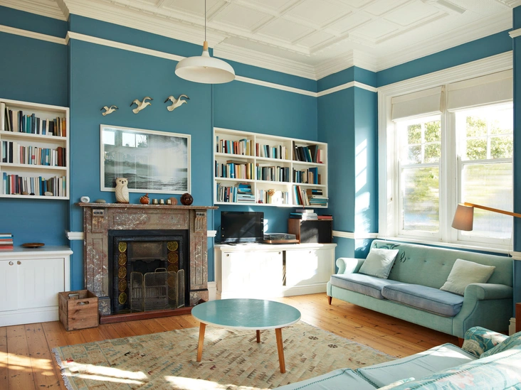 Такой цвет активно подойдет для детской, где будет жить ребенок с диагнозом «гиперактивность», синий цвет успокаивает, подавляет агрессию и провоцирует исключительно положительные эмоции. Более того, влияние синего цвета на человека улучшает концентрацию внимания. Если же речь идет о взрослых, то в этом случае синий помогает справиться с высокой температурой и артериальным давлением. Также синий может препятствовать воспалениям и бессоннице. Присутствие синего цвета в интерьере расслабляет, избавляет от усталости. Но будьте аккуратны — избыток синего цвета может отрицательно влиять на гормональный фон.