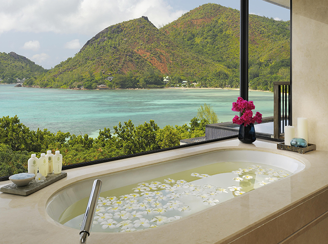 Полсуток спустя я уже восседаю в позе лотоса в йога-павильоне на холме с нереальными видами на Индийский океан. Шум волн и шелест пальм очень успокаивают. Мне кажется, что все это мне снится – может быть, потому, что первую ночь я спала неважно. Моя вилла с террасой и личным бассейном посреди мангровых зарослей сперва показалась мне слишком огромной. Плюс было ощущение, что спишь в джунглях: в отеле Raffles Seychelles, где мы остановились, вся инфраструктура удивительно органично вписана в буйную природу Сейшел. Но я быстро вошла во вкус – чего стоила одна ванная с панорамным окном, тоже с видами на океан. По вечерам, перед ужином, я лежала в ванне, пила просекко и любовалась закатом.