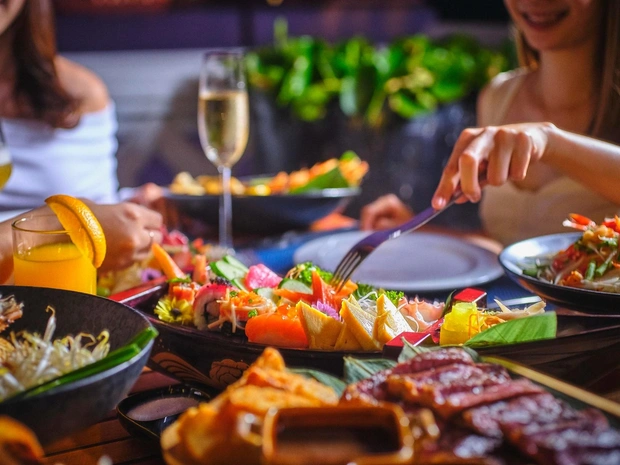 А гастрономическая часть поддерживает масштаб экспириенса: во время шоу гостям подают буфет с тайской и международной кухней. Особый акцент, конечно же, на морепродуктах на гриле: речные креветки, синие крабы, устрицы и раки. В меню — культовые тайские блюда вроде зеленого карри ганг кео ван гай, сибаса пла пад пак преа ван и стритфуд-хитов, включая омлет с крабом и кокосовым соусом. Sala Lakorn — место, где вкус, ритм и история складываются в незабываемое впечатление, даже для тех, кто давно познакомился с Таиландом.