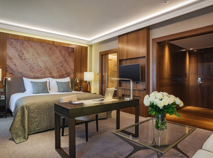 Kempinski в Риге открылся осенью 2017 года. Над интерьером работал британский дизайнер Алекс Кравец. Мрамор, дорогие породы дерева, фрески, интересные цветовые решения – все то, что принято называть элегантной роскошью.