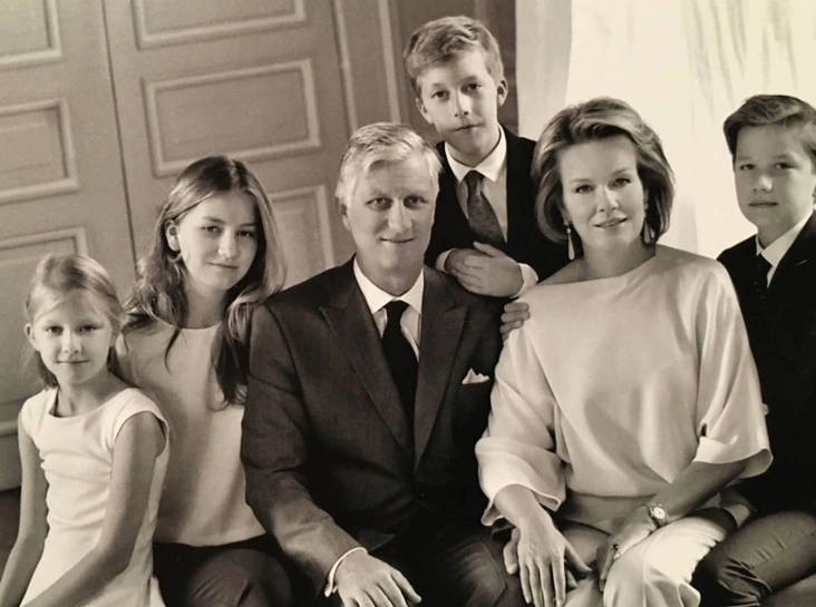 Для своей рождественской карточки бельгийские монархи выбрали формат лощенного family portrait. Черно-белый снимок, в котором, увы, нет ни намека на праздник напоминает, скорее, селфи, сделанное на скорую руку. Причем, кажется, смартфон был в руках у принца Габриэля – иначе как еще можно объяснить тот факт, что юноша вошел в кадр лишь наполовину? Словом, посыл Филиппа и Матильды нам не очень ясен: то ли монархи попытались отказаться от формальностей (тогда к чему такие элегантные наряды и скованные позы?), то ли им просто не повезло с фотографом.