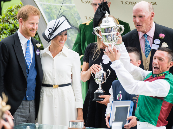 Елизавета II приезжает на Royal Ascot ежедневно. Но за 5 дней скачек можно не раз увидеть и многих других членов королевской семьи, и не только британской. Не пропускают эти скачки восточные короли и шейхи (что естественно), регулярно на скачках появляется шейха Моза, несколько раз сюда приезжала датская крон-пара – принц Фредерик и принцесса Мэри. Но, конечно, поклонники всегда ждут появления на скачках четы Кембриджских, которые данное мероприятие часто игнорируют, к огорчению публики. Теперь же, разумеется, все с еще большим нетерпением будут ожидать появления на скачках принца Гарри с Меган Маркл.