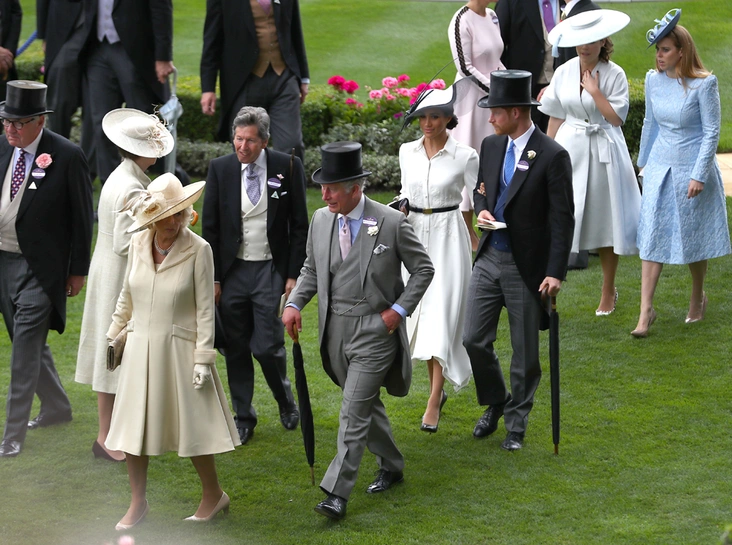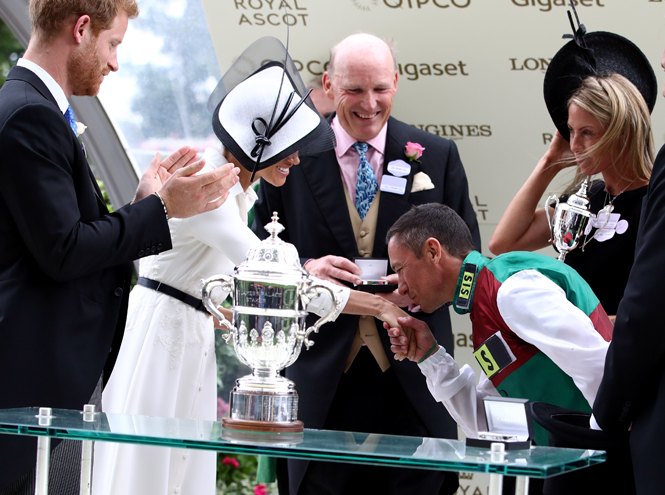 Елизавета II приезжает на Royal Ascot ежедневно. Но за 5 дней скачек можно не раз увидеть и многих других членов королевской семьи, и не только британской. Не пропускают эти скачки восточные короли и шейхи (что естественно), регулярно на скачках появляется шейха Моза, несколько раз сюда приезжала датская крон-пара – принц Фредерик и принцесса Мэри. Но, конечно, поклонники всегда ждут появления на скачках четы Кембриджских, которые данное мероприятие часто игнорируют, к огорчению публики. Теперь же, разумеется, все с еще большим нетерпением будут ожидать появления на скачках принца Гарри с Меган Маркл.