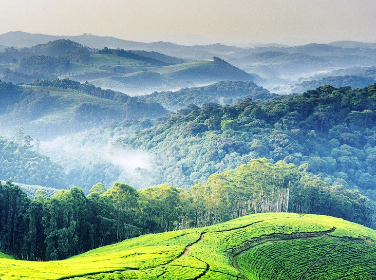 Не знаю, пиво это или молоко, но, помимо гуманитарных подвигов, успехи растерзанной геноцидом страны впечатляют: виза онлайн, отели от Marriott до One & Only, шарм вместо хаоса, музеи, галереи, забитые до отказа кофейни, лучшее, седьмое в мировом рейтинге, правительство, пятое место – для жизни женщин, второе место по всей Африке по условиям для развития бизнеса, полный отказ от целлофановых пакетов (будьте готовы избавиться от них при выходе из аэропорта) и топ-20 среди самых зеленых мест на планете. Как раз сейчас мы выехали за черту города Кигали в сторону озер, чтобы я смог воочию убедиться в последнем. Устал, но не сплю, ведь каждый поворот – это живописная панорама с уходящими в горизонт чайными плантациями, спящими вулканами в пушистых шапках облаков, полями цветущего пиретрума и коврами из алых томатов, что россыпями продают по окраинам дорог. Из-за особенностей рельефа Руанду называют «страной тысячи холмов». Мы сидим с Дэвидом на одном из них – я с кефиром, он с «Примусом» – и лицезреем остальные 999. Он условно тыкает пальцем в один из них и говорит, что завтра я встречусь там с горными гориллами. «Путь неближний, но это то, ради чего все мечтают приехать в сегодняшнюю мирную Руанду».