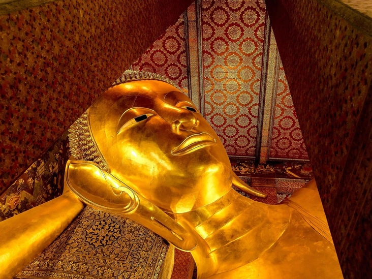 От Grand Palace до Wat Pho (Храма Лежащего Будды) всего 10-15 минут пешком. Это один из древнейших и крупнейших храмов Бангкока, существовавший еще до основания столицы. Его главное сокровище — гигантский Лежащий Будда длиной 46 метров, символ ухода в нирвану. Обратите внимание на ряд мисочек вдоль стены — в них бросают монетки «на удачу» (набор можно взять у входа). Осмотрев Будду, загляните в храмовые галереи, где собраны более 100 золотых статуй со всей страны. Это настоящий «музей тайского буддизма».