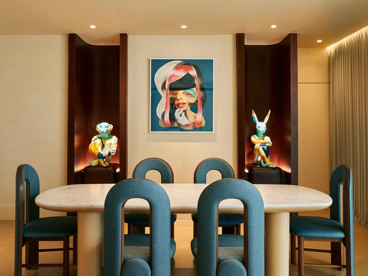 А еще мне показалось отличным решением сделать арт-объект связующим звеном всего дизайна. Инсталляция Unity of the Double, созданная французской художницей Хлоей Келли Миллер (Chloé Kelly Miller) в сотрудничестве с арт-бюро MozART Advisory, — это пара вручную вырезанных каменных скульптур, изготовленных прямо на территории отеля.