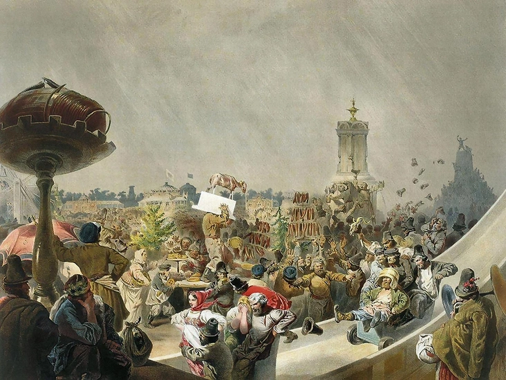 Церемония коронации, сопровождаемая священным обрядом венчания на царство, всегда считалась величайшим праздником. Пока аристократы и представители среднего класса отмечали восшествие на престол нового монарха во дворцах и театрах, крестьяне огромными толпами стекались на Ходынское поле, которое еще со времен Екатерины II стало местом проведения массовых народных гуляний по случаю событий государственного масштаба. Именно здесь бедняки могли повеселиться от души, отложив все свои будничные заботы, бесплатно полакомиться блюдами из мяса и виноградными винами, которые в обычной жизни не могли себе позволить. «К царю на обед», — радостно восклицали они, направляясь на Ходынское поле.