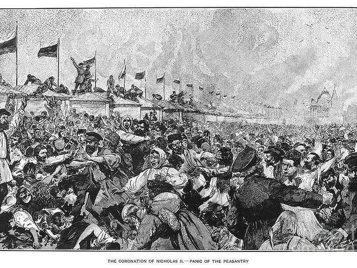 И тут внезапно прошел слух, что буфетчики раздают подарки среди «своих», а потому на всех их не хватит. Обезумевший народ немедленно ринулся к лавкам и ларькам, сметая по пути полицейские кордоны и топча тех, кто упал под ноги. Перепуганные раздатчики стали бросать подарки прямо в толпу, что только усугубило царивший вокруг хаос.
