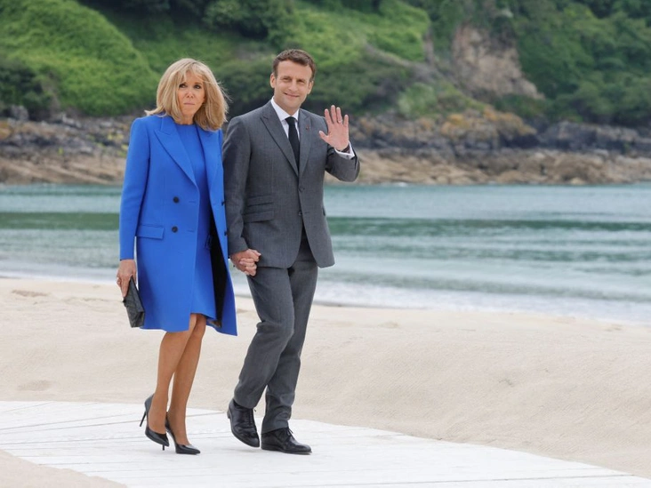 До приема в «Проекте Эдем» лидеры саммита также встречались на набережной курортного городка Карбис-Бэй, чтобы сделать совместное фото. Здесь появилась еще одна первая леди, супруга президента Франции Бриджит Макрон. Женщина выглядела очень стильно в ультрамариновом тотал-луке: приталенном пальто и платье длинной чуть выше колена (читайте также: Никаких мини-юбок: почему Брижит Макрон кардинально изменила свой стиль).