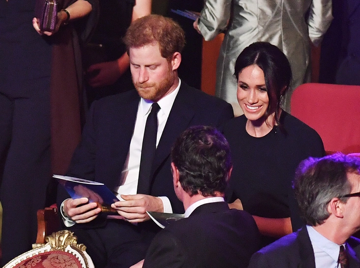 Как девушка исключительная и приятная Ее Величеству, Меган Маркл не просто получила позволение посетить концерт, а была приглашена в одну ложу с Королевой, где располагались только ближайшие родственники монархини. Разумеется, к мероприятию невеста принца Гарри подошла со всей ответственностью, выбрав элегантное и целомудренное платье-кейп от Stella McCartney, «звездный» клатч Naeem Khan и уже знакомые нам лодочки от Manolo Blanik (кстати, за день девушка дважды позволила себе надеть «старую» вещь, читайте: «Новый выход принца Гарри и Меган Маркл (и она повторяется в нарядах)»).