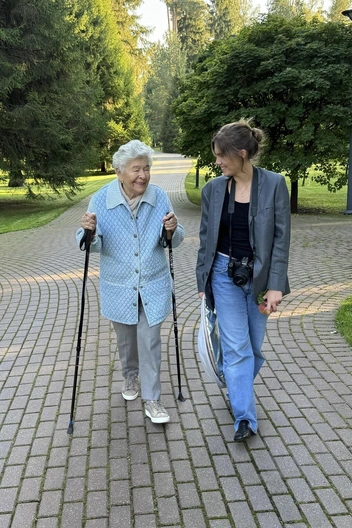 Но спорт — это одно, а бабушкина физическая форма — другое. Теперь, когда бабушке 92 года, это забота мамы и ее сестры Лены, моей тети. Они бдительно следят за тем, сколько шагов в день бабушка проходит, сколько минут делает зарядку, занималась ли с гантелями и т. п. Для этого у нее есть Apple Watch, которые все это измеряют. И если на часах не столько тысяч шагов, сколько положено, то от двух дочерей бабушке не отбиться, до конца дня она обязана будет эти необходимые тысячи доходить. Чтобы ходьба была более эффективной, с нагрузкой на руки, бабушка ходит с палками, занимается nordic walking. Иногда я хожу вместе с ней и вижу: она делает это с удовольствием, а не только чтобы сделать приятное своим дочерям.