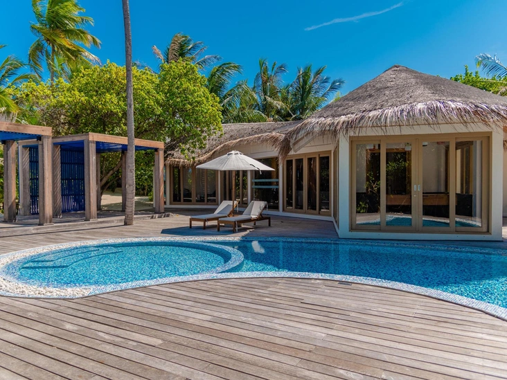 Виллы — один из самых популярных видов для размещения на Мальдивах. Семье с маленькими детьми будет удобно с пляжными, более приватными виллами с несколькими комнатами. Так, у каждого члена семьи будет личное пространство, выход к океану и бассейн во дворе позволят присматривать за детьми, не покидая виллу.
