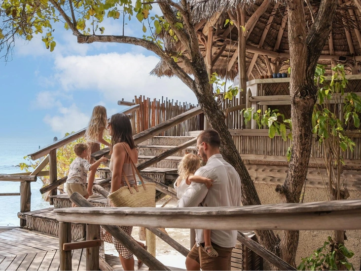 Виллы на воде подойдут семьям с детьми-подростками, за которыми не нужно присматривать. Отель предлагает два вида вилл: односпальные и дуплексы. В каждой из них есть бассейн, собственная терраса с зоной отдыха и спуск в океан. Особенность дуплекса — дополнительная комната и ванная на втором этаже, где сможет разместиться подросток и организовать свое личное пространство.