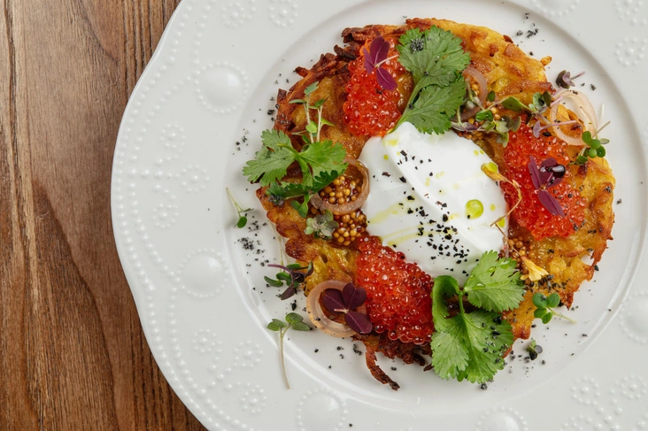 В Tilda шеф предлагает попробовать авторскую вариацию картофельного драника с красной икрой и копченой сметаной — как guilty pleasure, которую приятно позволить себе с утра. Немного изысканности добавит французский омлет со страчателлой и белой трюфельной пастой, которая считается наиболее ароматной или креп-сюзетт, французский десерт, с ванильным мороженым и хрустящей дробленой фисташкой.
